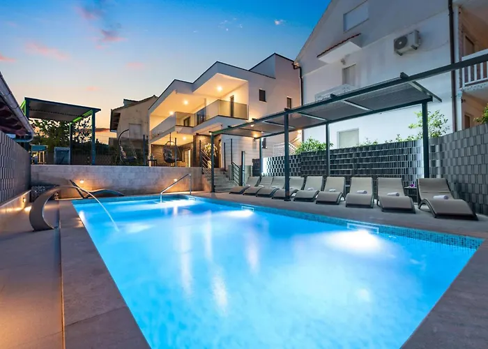 Les clients peuvent utiliser une cuisine équipée, ainsi qu'un coin repas dans le gîte. Vous trouverez également un réfrigérateur, un four et de la vaisselle pour préparer votre propre repas. L'aéroport Aeroport de Split est accessible en 33 minutes en voiture de cette villa de 6 chambres.